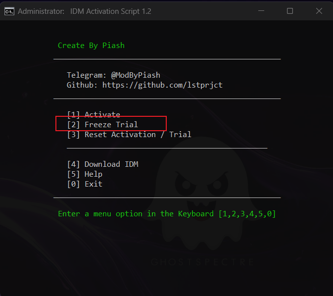 iex(irm is.gd/idm_reset)3) Chọn số 2 để "khóa thời gian dùng thử suốt đời" để bạn không phải đặt lại bản dùng thử lại và thời gian dùng thử của bạn sẽ không hết hạn.